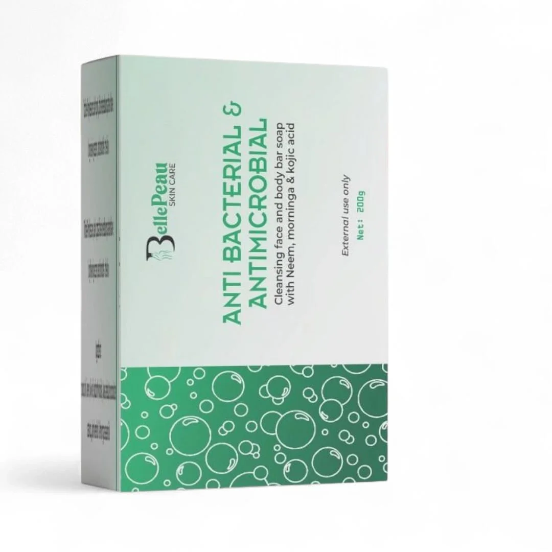 This soap is designed to provide a deep, antimicrobial cleanse for both the face and body while utilizing the benefits of Neem, Moringa, and Kojic Acid to combat bacteria, inflammation, and uneven skin tone